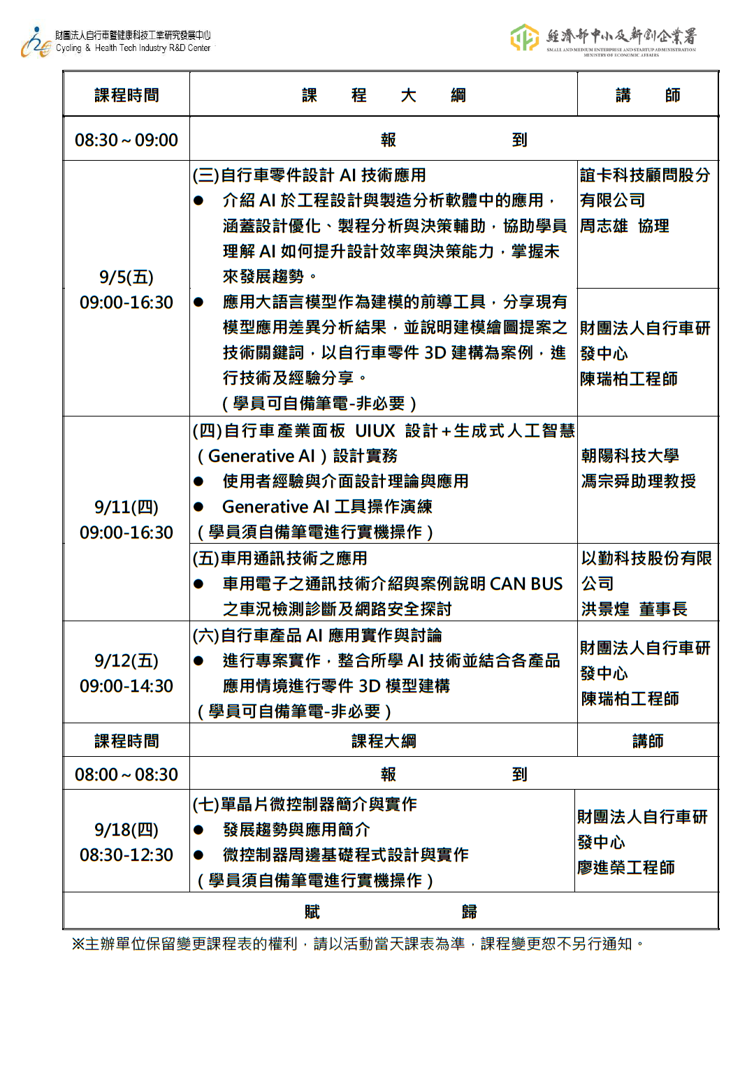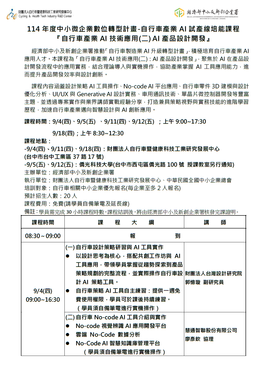 首頁 課程資訊 課程研討 114年度中小微企業數位轉型計畫-自行車產業AI試產線培能課程 『自行車產業AI技術應用(二) AI產品設計開發』 課程資訊 所有訊息 課程研討 2025-08-08 課程研討 114年度中小微企業數位轉型計畫-自行車產業AI試產線培能課程 『自行車產業AI技術應用(二) AI產品設計開發』 1 2026-04-30 114年度中小微企業數位轉型計畫-自行車產業AI試產線培能課 下載 BACK