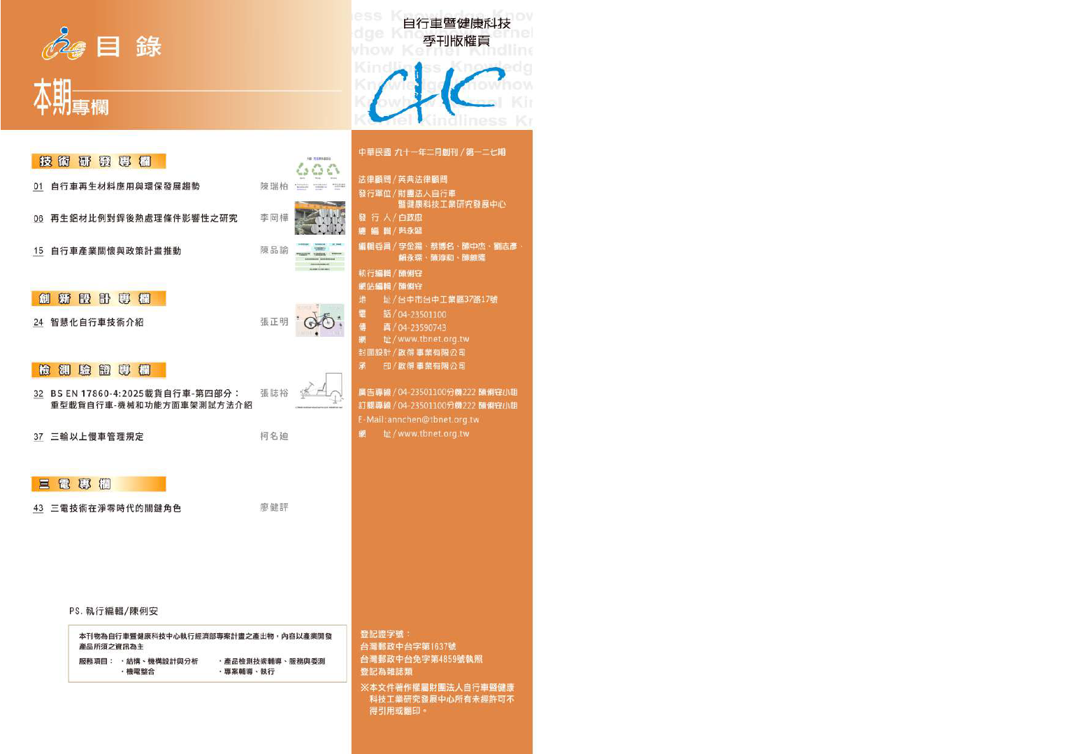 首頁 最新訊息 中心公告 自行車期刊127期 最新訊息 所有訊息 展覽資訊 產業研討 活動資訊 中心公告 2026-01-15 自行車期刊127期 1 2026-03-29 127期季刊 下載 BACK